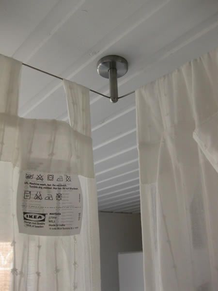 Si tratta di fissare semplicemente al soffitto i supporti per tende Dignitet seguendo il perimetro del letto.