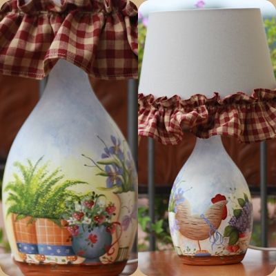Ha poi accentuato il tocco country applicando al paralume un tessuto a quadrtotti bianchi e rossi.