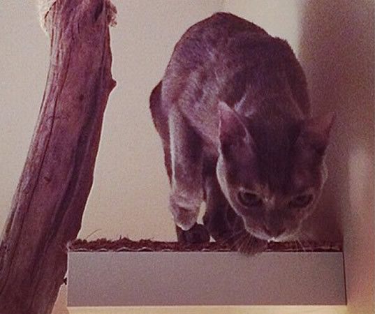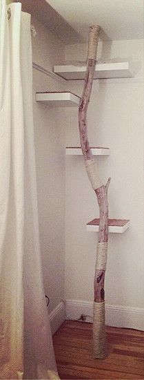 Da qui l'idea di creargli anche una sorta di palo su cui arrampicarsi e che allo stesso tempo sostenga anche le mensole