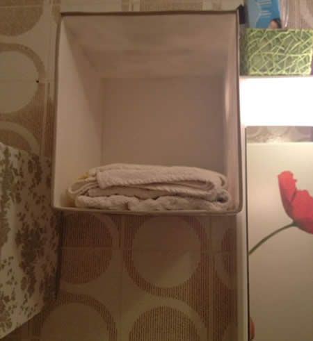 Questa modifica si presta in modo particolare a contenere asciugamani o comunque oggetti dal peso similiare.