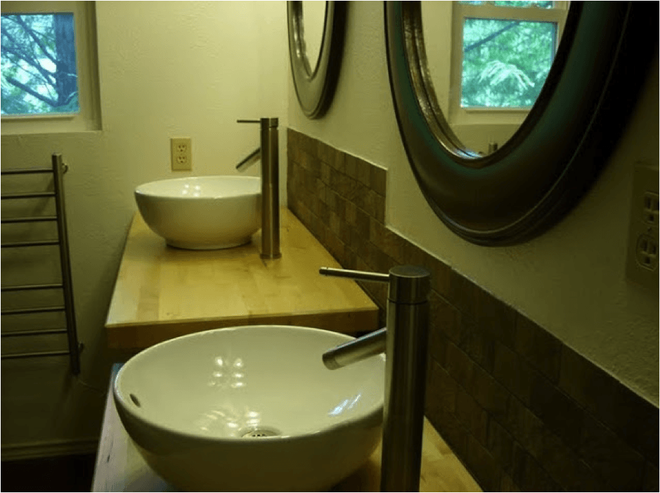 Chi l'ha detto che le isole i banchi da lavoro pensati per le cucine non possano andare anche in bagno. Questa modifica mi piace particolarmente perchè sono riusciti a creare un'atmosfera delicata e funzionale allo stesso tempo.