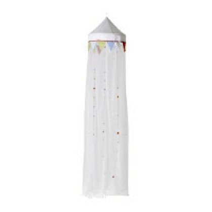 Come prima cosa ha separato tagliandola la parte superiore del baldacchino (dalla quale ha ricavato il copri lampadario) dalla parte inferiore, quella destinata a fare da barriera contro le zanzare e i moscerini nelle calde serate d'estate.