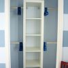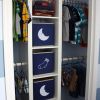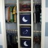 Un piccolo sgabuzzino trasformato in un guardaroba per bimbi.