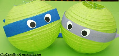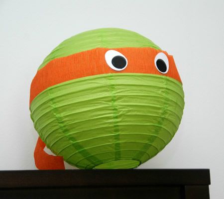 Si tratta di trasformare l'economicissimo paralume Morup verde in teste di tartarughe.
