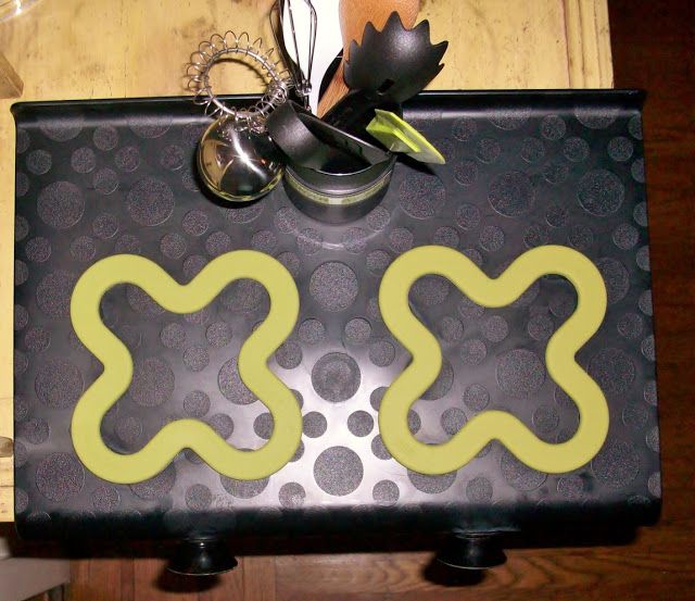 I sottopentola e i pomelli sono stati applicati utilizzando della colla.