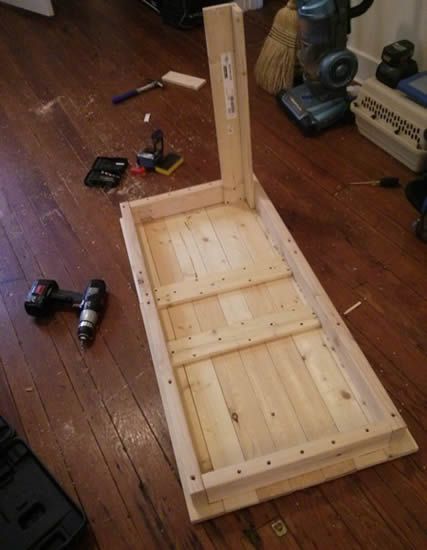 Come si vede nella foto si utilizzano delle altre assi affrancate in verticale nella parte sotto per fissare il tutto.