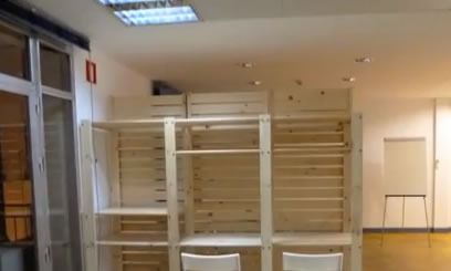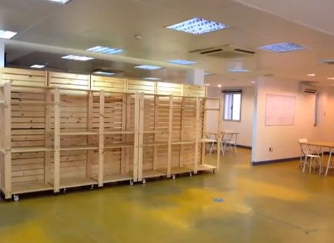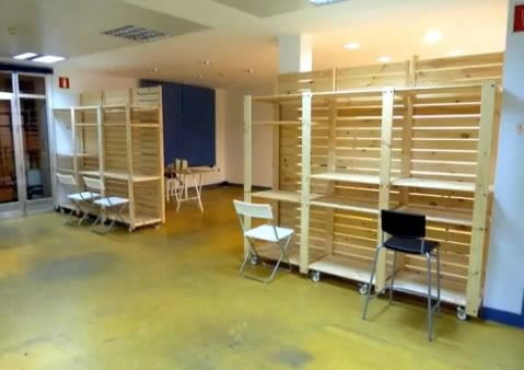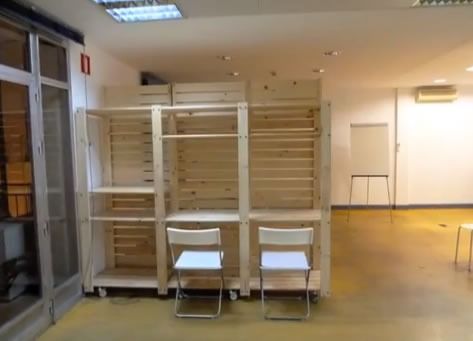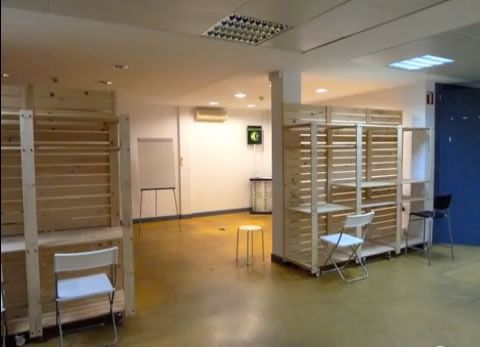 In Spagna sono riusciti a ricavare due aree di lavoro utilizzando degli scaffali componibili per cantina